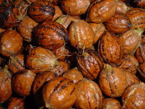 | 実りの秋がやってきました。こんなにたくさん取れたのは実は、初めて!カラスに持っていかれたり、ころころこどこかへ転がっていってしまったり、今年は自然の恵みに感謝していただくことにします。 オトウが取り出してくれたクルミの実。 まずは、畑のピーマンと和えてみました。 |