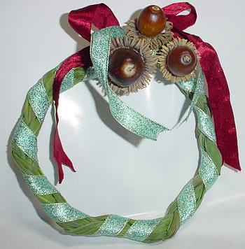 いただいたレモングラス、飲む他に何かいいことないかな? この前、岩屋観音で拾ってきた「どんぐり」を使って香りのリースでも作ってみようか? 《作り方》 刈り取ったレモングラスを日影に数日干しておく。 根元をそろえて、だいたい6本くらいの束を3束そろえて三つ網にする。 わっかを作り、形を整えて先と根元を適当にレモングラスで縛る。 どんぐりの傘にキリで2箇所、穴をあける。 ワイヤーを通してレモングラスの結び目のところに好みの数を取り付ける。 ワイヤーは、切り口が危なくないようにしっかり始末をする。 好きな色のリボンをまいて結ぶ。 どんぐりと傘にボンドをつけてどんぐりを傘にはめ込めば出来上がり。 香りが薄くなってきたら、葉を傷つけると新たに香りが復活します。 怪我をして外に出ることのできないお友達に、このリースを作ってお見舞いに行きました。 「外は、秋ですよ。出歩くことのできないあなたに、少しばかり私から秋のおすそわけね。早くよくなってね。」ってね。お友達はとっても喜んでくれました。 へへへ、自己流のリースで、こんなに喜んでもらえるなんて。きんとと、うれしいです。 |