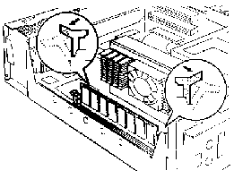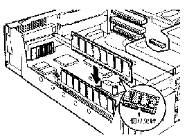 メモリーの切り欠けをスロットの切り欠け位置と合わせ、両側のフックが完全に起き上がって掛かるまでまっすぐに押し込みます。 |
