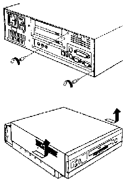 電源コードやその他の接続コードをはずした後、パソコン本体背面の2カ所のネジをはずします。 |